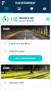 Programmation de tous vos entraînements jusqu'au jour de la course en ajoutant des objectifs intermédiaires.