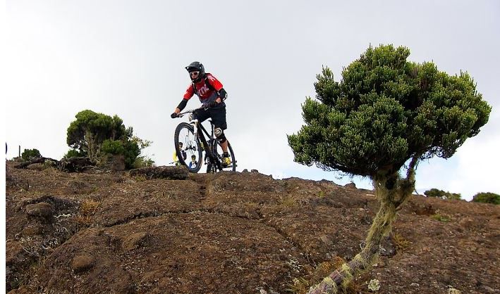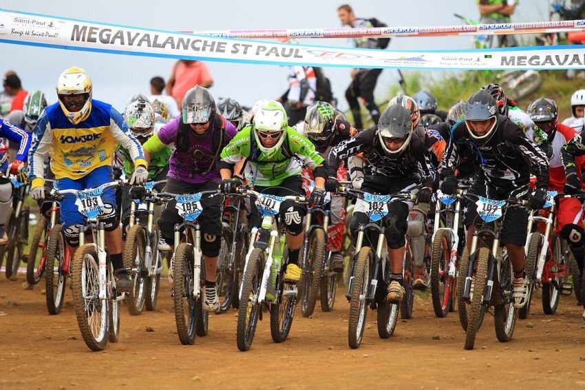 Toi qui roules sur le parcours de la Méga plusieurs fois par semaine, peux-tu nous présenter les principales difficultés, les endroits où on peut attaquer et ceux où il faut être prudent ? La première chose importante est de gérer la première partie où la roche volcanique ne pardonne pas. Il faut rouler sur des oeufs pour ne pas crever bêtement et perdre beaucoup de temps. On rentre ensuite dans la forêt où de belles marches vous attendent, suivie d'une bosse sur la crête qui peut vite vous mettre dans le rouge. Nous sommes à 2000m d'altitude et le moindre effort pique la gorge ! Une fois la bosse passée, le parcours emprunte une partie plus boisée avec de nombreuses racines et rochers où il faut être très attentif, car on peut vite partir dans le décor. Attention également à la terre locale (terre miroir) qui porte très bien son nom. Il suffit d'une petite pluie et là, attention le moindre petit coup de frein avant en trop ou un peu trop d'angle et bing, chute assurée… Après avoir passé le bike parc du Maïdo, vous allez enchaîner avec une partie très rapide avec beaucoup de poussière jusqu'à une route bétonnée. Dans cette partie, et si vous avez de bonnes cuisses, une bonne résistance et encore du jus, appuyez à bloc sur les pédales et mettez les watts pour gratter quelques places (Attention à quand même bien gérer son effort). Une fois cette partie de pédalage faite, vous plongez dans une belle partie de champs de cannes à sucre avec de multiples virages serrés et des cailloux fuyants. Pour le final je sais que cela fini à Savannah, mais je ne connais pas la trace exacte. Surprise donc ! [caption id="attachment_1097" align="aligncenter" width="776" class=" "]