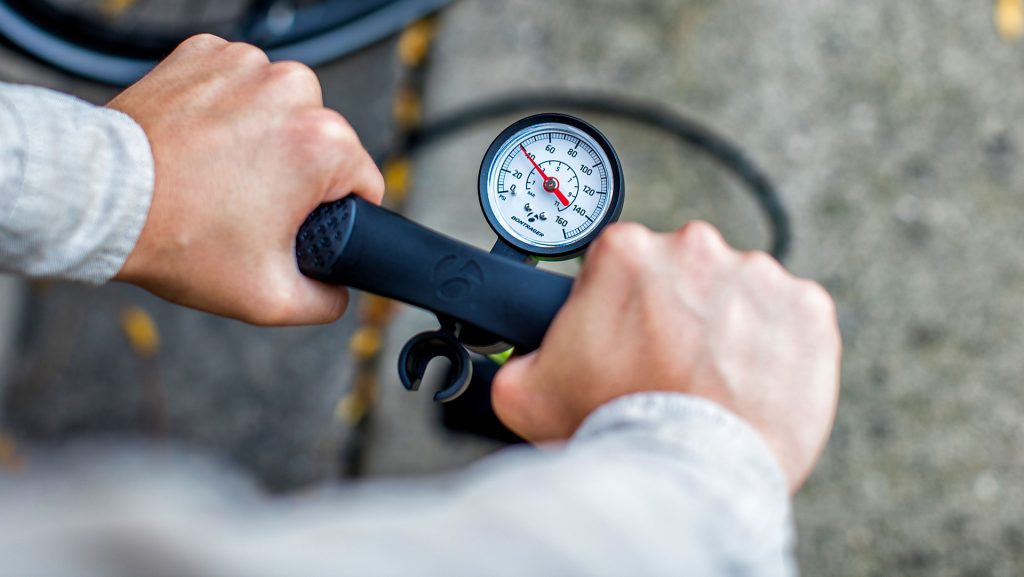 Comme sur une voiture, vous devez vérifier la pression des pneus de votre vélo régulièrement. La pression max (à ne pas dépasser donc) des pneus est indiquée sur le flanc de celui-ci. Vous aurez donc simplement à vous procurer une pompe avec un manomètre pour gonfler vos pneus à la bonne pression.