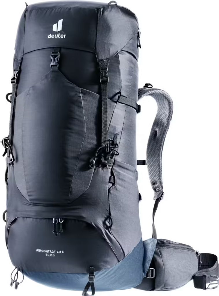 Le Deuter Aircontact Lite 50+10L est un sac à dos de trekking polyvalent, plutôt très léger pour sa contenance (1,9 kg pour 60L) et extrêmement robuste, grâce à son cadre en aluminium et sa construction sans PFC.