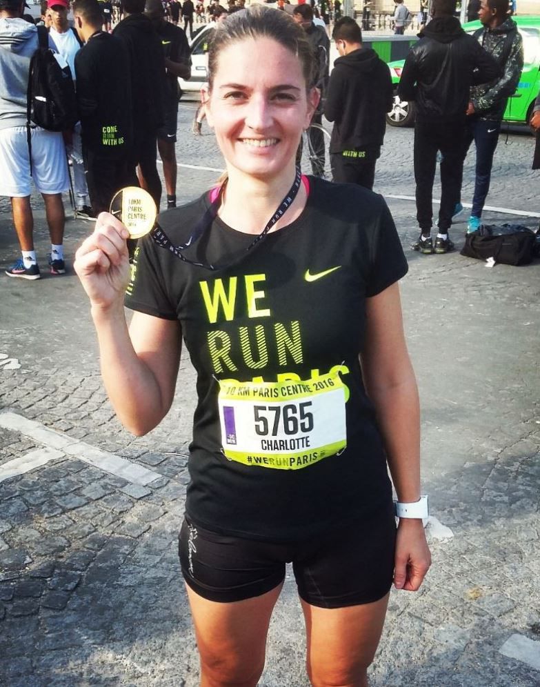 Les gens dans le public sont de plus en plus nombreux au fur et à mesure qu’on approche de l’arrivée et les encouragements se multiplient, « allez courage, 800 mètres et c‘est l’arrivée ». Je donne tout sur le dernier kilomètre, j’accélère même si je sens une point de côté, et enfin j’aperçois l’arche verte là-bas au fond, j’y suis presque ! Dernier coup de basket et je franchis la ligne d’arrivée à bout de souffle, en regardant ma montre pour arrêter le chrono et là surprise : 51’24 !!! Je n’y crois pas, je frôle les 50’, je ne suis pas si loin de mon objectif, c’est génial ! Je vais me poser sur une barrière pour souffler et je me laisse envahir par l’émotion, je l’ai fait et bien fait, et je suis très fière !