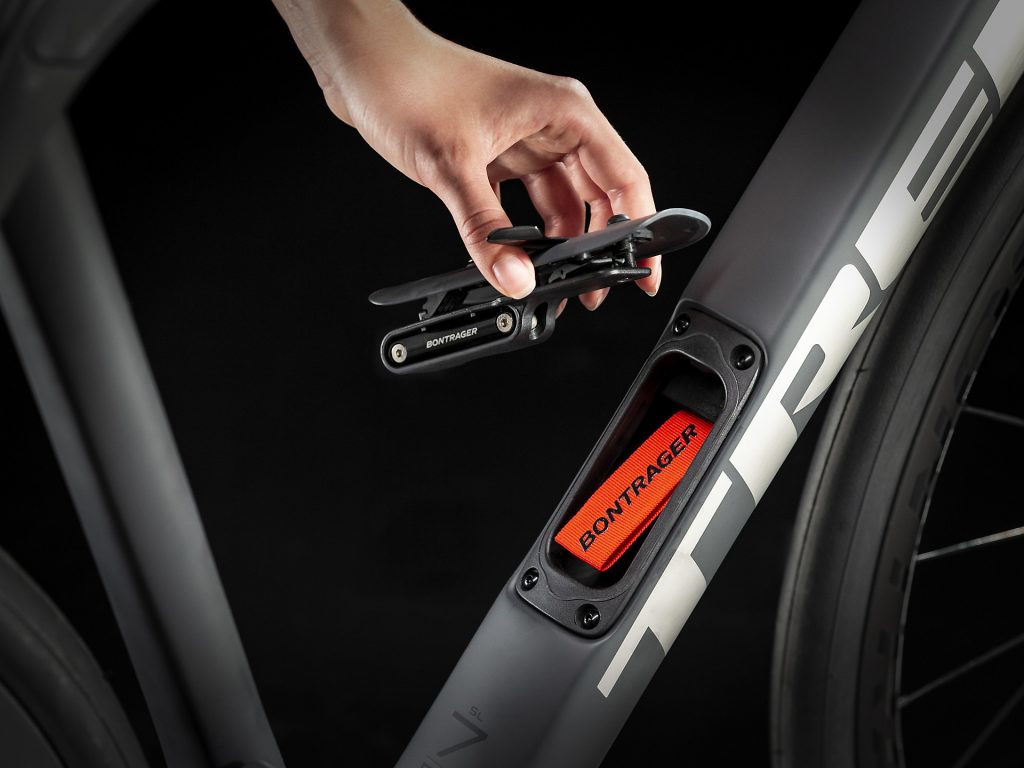 Certains cadres de vélos disposent désormais d'une cage intégrée sous le porte bidon ! C'est le cas du vélo de route Trek Domane SL avec un emplacement intégrant un multi-outils et des accessoires de réparation. En VTT, Specialized a créé une cage similaire, intégrée, permettant d’entreposer des outils ou tout autre objet d’une certaine envergure dans votre tube inférieure.