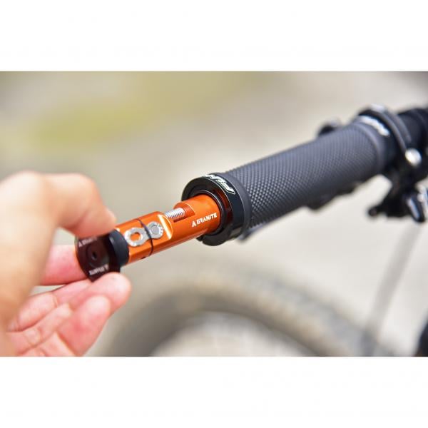 Autre périphérique creux de notre vélo qui peut vous permettre de transporter des outils, le guidon ! Cette fois, c’est la marque Zefal qui nous dévoile un kit de réparation pour pneus tubeless intégré dans le cintre. Un premier embout possède une aiguille ainsi que 3 mèches de Ø 5 mm, tandis que l'autre embout intègre un couteau et 3 mèches de Ø 2mm.