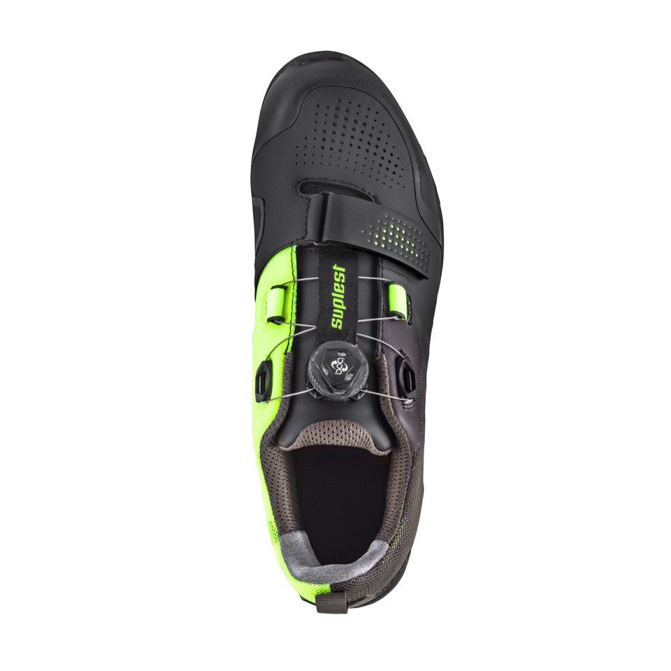 2) X1. PRO: Chaussure: PU / Mesh. Semelle: Semelle SUPtraction - développée en Suisse - avec une composition spécifique pour les cyclistes VTT ».
