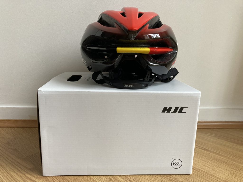 Dans les mains ou sur la tête, le casque est très léger. Avec 200g nous sommes dans la fourchette très basse pour ce type de casque, en comparaison un Kask Protone est à 230g. La sécurité n’a pas été laissée de côté par HJC pour autant.
