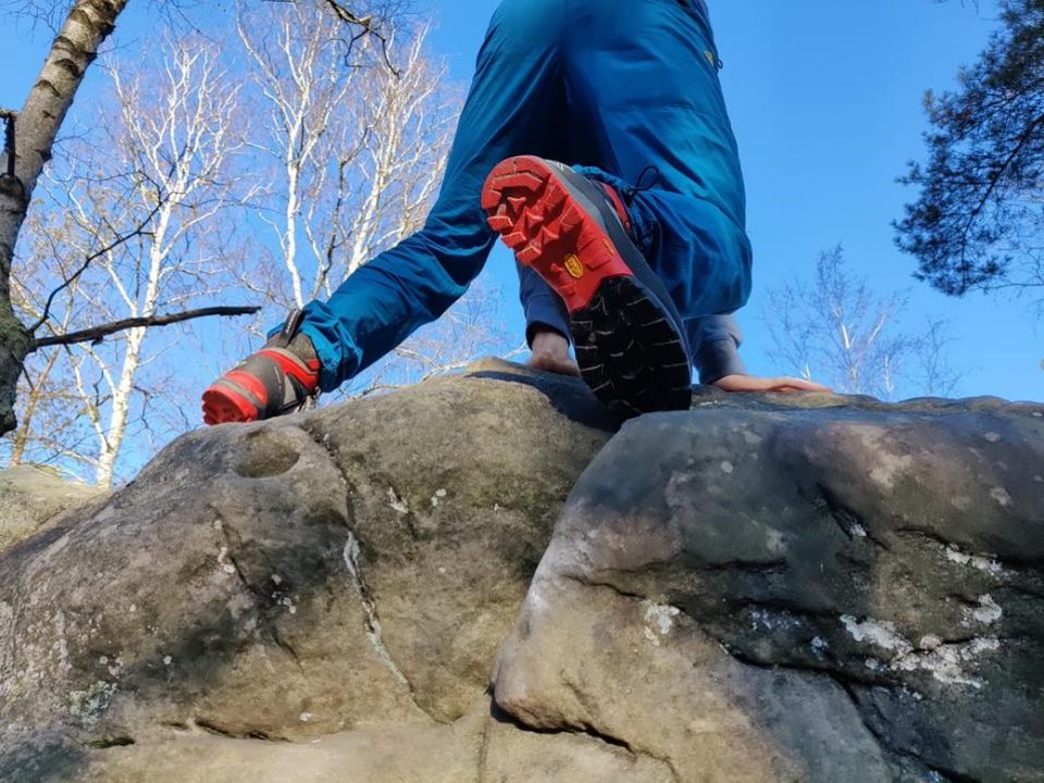La semelle Vibram accroche très bien. Là encore Garmont s'est associé un savoir-faire reconnu dans le monde de la montagne. Quelques petits tests sur des cailloux et rochets, ça accroche bien. Forcément moins précis qu’un chausson d’escalade, mais ce n’est pas ce qu’on leur demande !