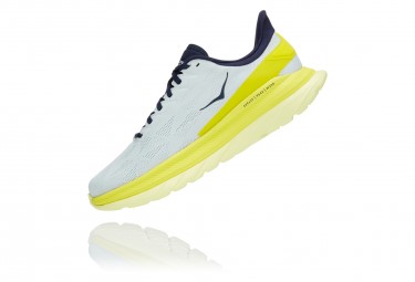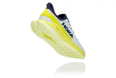 Le jaune (présent en masse sur la semelle et l'arrière) n’est pas une couleur qui attire facilement, mais l’association avec le gris et le bleu se fait plutôt bien. Le logo de la marque HOKA est à la fois visible et discret tandis que la police utilisée ne détonne pas avec le style de la chaussure.