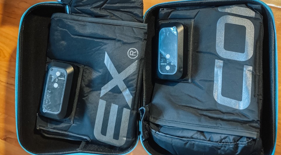 Tout d'abord, l'avantage de ces bottes de compression Compex Ayre sans fil c'est qu'elles sont facilement transportables (voir photo ci-dessus) que ce soit pour des compétitions ou des stages d'entraînement loin de la maison. Concernant le produit en lui-même, il existe deux modes d'utilisation : le premier (F1) met sous pression les quatre chambres l'une à la suite de l'autre. Autrement dit, la compression commence au niveau des pieds pour finir par les cuisses. La compression se relâche ensuite simultanément dans les quatre zones. Tandis que le deuxième mode (F2) met sous pression les 4 zones en même temps.
