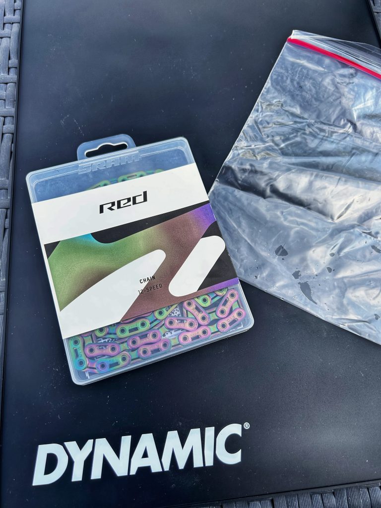 Avant toute chose, il est impératif de nettoyer et dégraisser totalement sa chaîne avant immersion dans le bain de cire. Pour ce faire, n’étant pas équipé de bac à ultrasons (dont je recommande vivement l’utilisation), j’ai baigné ma chaîne toute la nuit dans un sachet plastique rempli de dégraissant. La chaîne étant neuve, la graisse d’origine est assez collante, donc ne pas hésiter à laisser quelques heures pour un résultat optimal, qui conditionnera la bonne accroche de la cire. Après un séchage méticuleux, il est temps de mettre en chauffe le Waxifyer.