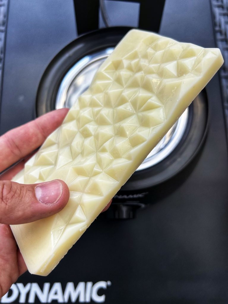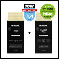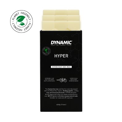 Le deuxième choix qui s’offre à vous, c’est la Hyper. Là, on rentre clairement dans la performance ! La Hyper, c’est le choix des équipes professionnelles, lesquelles ayant conjointement collaborées à la conception ! RedBull-Bora ou encore Alpecin, pour ne citer qu’eux, ont fait le choix de cette formule pour, comme le dit l’expression bien connue, « les gains marginaux » ! Ce ne sont pas moins de 6 à 12 watts d’économisés qui sont annoncés, oui vous avez bien lu, et quand on sait que ce sont les détails qui font les grandes victoires, autant mettre toutes les chances de son côté ! Mais je vous vois venir… « tout ça pour ça !? » Évidemment non ! Cette formule propose elle aussi une transmission silencieuse et propre, mais avec une durabilité moindre. Dynamic vous suggère même de mélanger les deux cires pour avoir accès au meilleur des deux mondes. Et n’oublions pas une chose : chez les professionnels, il n’y a pas que les coureurs et coureuses à satisfaire, il y a aussi les mécanos ! Ceux qui, le soir à l’hôtel, doivent nettoyer et entretenir chaque vélo jusque très tard dans la nuit, et pour qui cette cire représente un gain de temps incroyable dans l’entretien des transmissions.