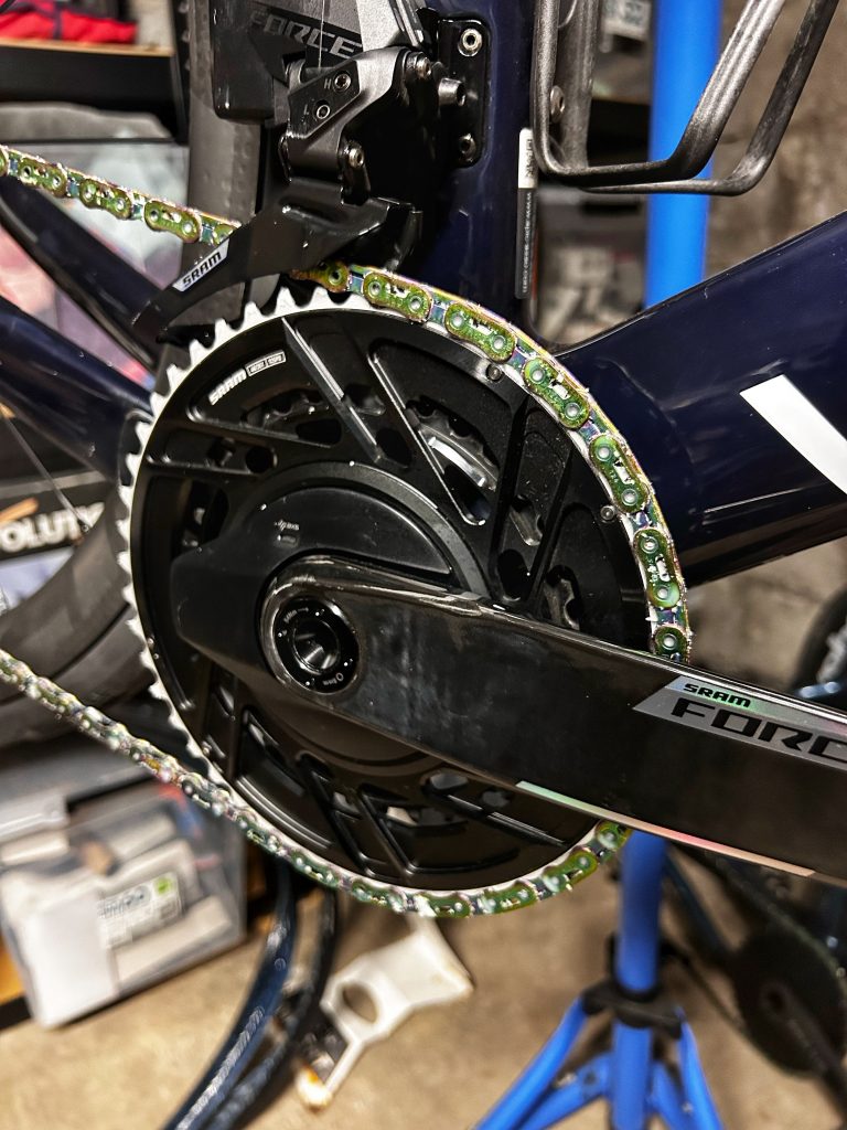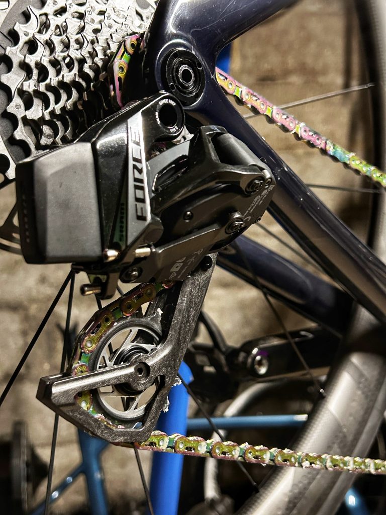 si, comme moi, vous êtes passionné de beau matériel, que vous aimez avoir une transmission propre qui ne ressemble pas à une friteuse, que les seuls rossignols que vous aimez entendre sont ceux qui se cachent dans les arbres et pas dans votre dérailleur, ce système est fait pour vous ! Si vous en avez assez du graissage traditionnel, dont l’efficacité se limite à une centaine de kilomètres, et que vous voulez gagner le Tour des Flandres sans effort grâce aux « marginal gains », ce produit est aussi fait pour vous. En bref, même si tout cela peut sembler être un gadget – c’était d’ailleurs mon a priori au départ – eh bien, que nenni ! Le système proposé ici est simple d’utilisation (même si la procédure peut paraître assez longue) et très efficace. Je vous l’accorde, l’économie de watts réalisée à chaque coup de pédale reste une donnée très floue et difficile à retranscrire le dimanche matin avec les copains, mais elle flatte l’ego, et rien que ça peut vous faire gagner de précieuses secondes dans la course aux cafés ! Si je devais trouver un léger défaut, c’est que pour répéter l’opération tous les 900 à 1 000 kilomètres environ, vous devrez vous fendre d’une attache rapide neuve à chaque fois. C’est un détail, mais qui peut vite coûter un billet.