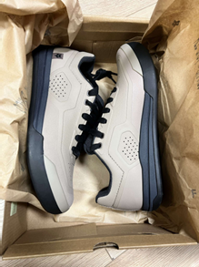 Il faut savoir que j’ai roulé avec la paire de Flat beige. En effet, il existe d'autres alternatives comme le modèle Boa ou le modèle classique à cales, mais également différentes couleurs. Aussi, pour cette paire, je l'ai trouvée plutôt réussie esthétiquement avec un petit logo en bas de la chaussure en accord avec la totalité de cette nouvelle gamme fox. Je dirai que ce petit logo 2023 est vraiment le gros plus qui rend la paire sobre tout en étant très esthétique. Cela dit, cette paire est construite dans une matière qui donne un côté trop plastique pour moi, mais qui s’avère très utile, je vous en reparlerai.