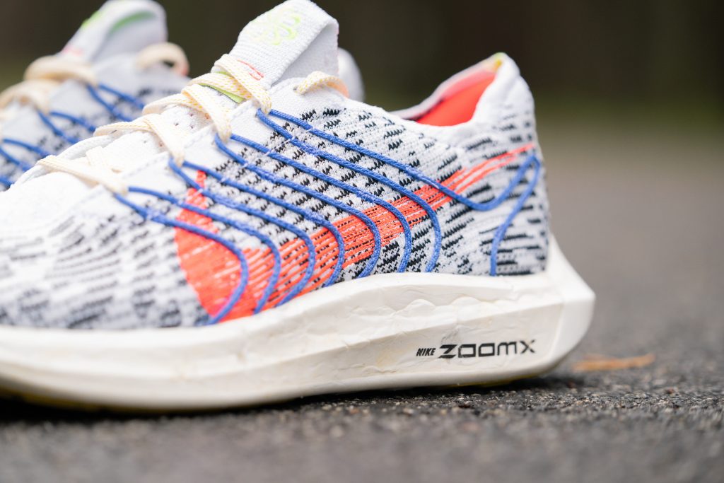 Excellent amorti ? Et comment, héritage oblige, les Pegasus Turbo Next Nature ont intégré le ZoomX. Le ZoomX est la meilleure semelle intermédiaire de Nike. Elles offrent un retour d'énergie de 85% selon Nike, tout en étant leur semelle la plus légère. La technologie Zoom X a été utilisée pour la première fois sur les modèles de compétitions avant d'être démocratisé par les Pegasus Turbo, comme nous le disions au début de l'article. Dans ce modèle, la semelle Zoom X est composée d'un assemblage de chute récupérées dans le processus de fabrication. C'est d'ailleurs ce qui donne cet aspect si particulier à la semelle avec ces petits trous. Ces chaussures sont donc confortables et agréables à porter. De plus on se sent à l'aise à l'intérieur et elles maintiennent bien le pied. Le bon maintien étant ici assuré par la technologie Flyknit, d'origine recyclé s'il vous plait.