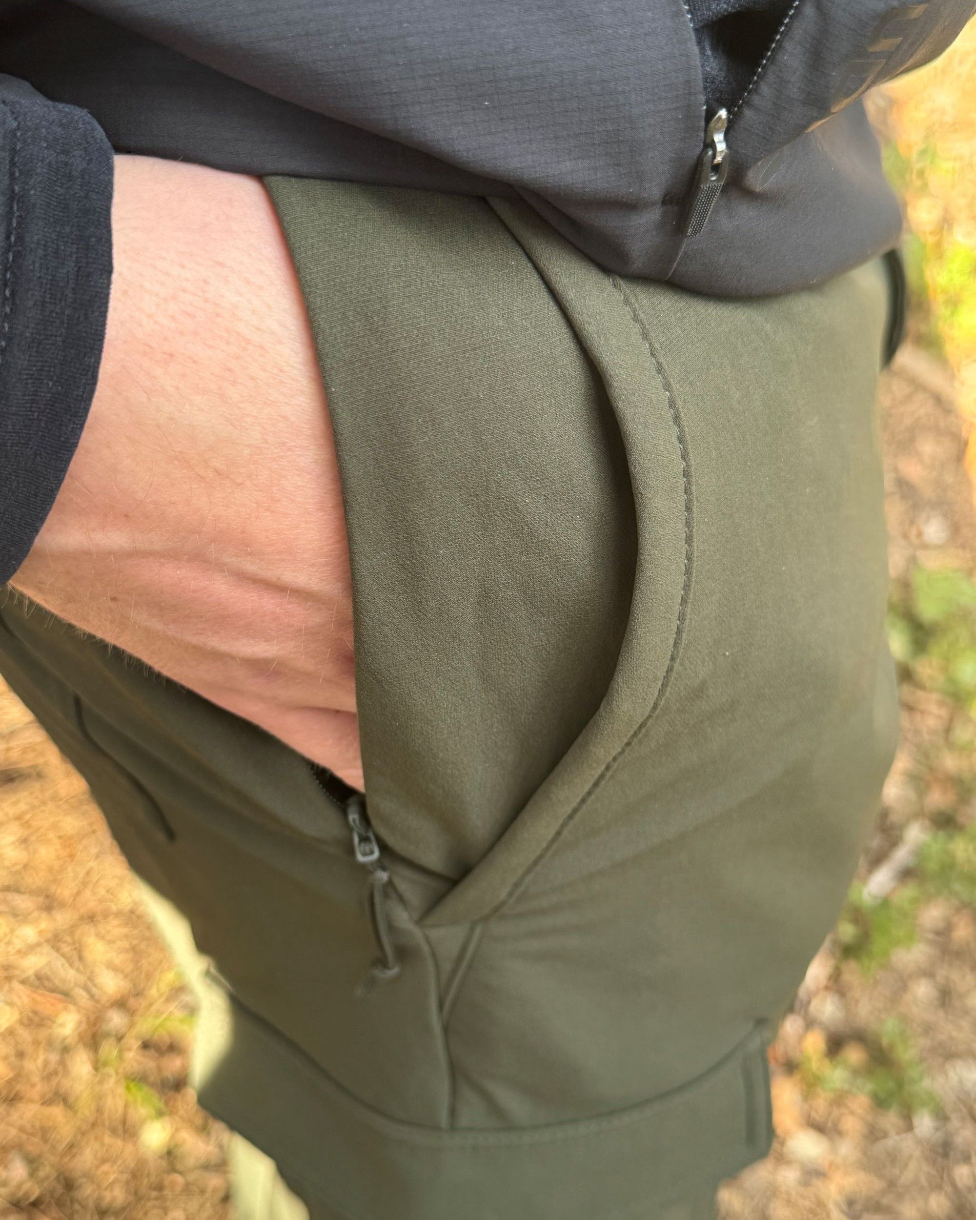 L'accès aux poches reste fluide même avec un sac à dos ou une ceinture de randonnée. On sent que le positionnement a été étudié pour l'usage terrain : pas besoin de se contorsionner pour attraper son matériel.
