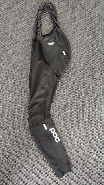 Terminons ce test avec un produit essentiel pour celui qui roule en hiver, le cuissard long. Ce cuissard POC ne fait pas dans l'exubérance : il est noir, avec des bandes réfléchissantes au niveau des fessiers et mollets de chaque côté pour la visibilité, ce qui permet de l'utiliser facilement avec une garde-robe existante sans faute de goût. Un logo POC blanc est apposé au niveau du mollet gauche.