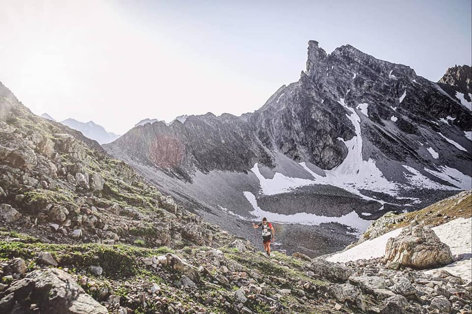 En route vers le col de l’Iseran (800 D+ en 4km), la pente est régulière et permet de relancer son allure, mais attention au piège puisque le ravitaillement au col est suivi d’une nouvelle montée éprouvante sur un terrain technique, raide et lunaire pour rejoindre l’Aiguille Pers (3386m). La descente se fait entièrement dans une neige particulièrement transformée où les glissades/enfoncements ont permis aux jambes de faire une séance de cryo, finalement une bonne nouvelle avant d’attaquer le dernier col qui rejoint le passage du Tunnel des Lessières (original et spectaculaire à 3000m d’altitude). Il reste enfin 7km de (presque) descente sur les pistes de ski de Val d’Isère pour ce qu’il restera de vos jambes !