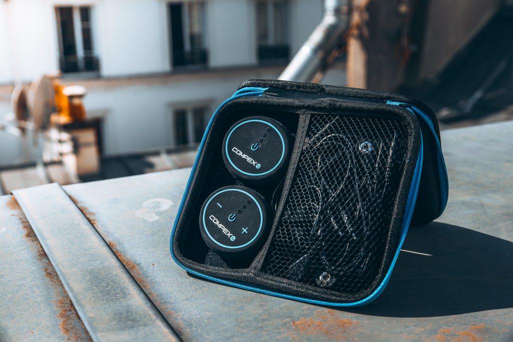 Le design de ce nouveau Compex Mini Sans Fil est très pratique puisqu'il est vendu avec une trousse de rangement bien pensée qui permet d'emmener le produit partout. Cet électro stimulateur a été conçu afin de simplifier l'utilisation au maximum notamment avec la taille du boîtier qui est plus petit.