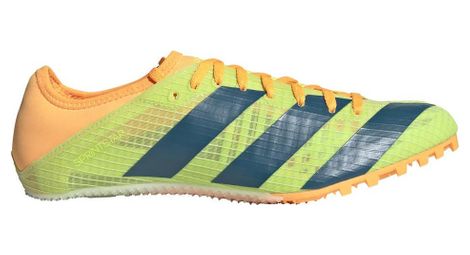 Chaussures d athletisme unisexe adidas performance sprintstar blanc vert rose fais preuve d une vitesse explosive des la ligne de depart cette chaussure a pointes adidas t assure une performance ultime sur courte distance legere pour que rien ne te ralentisse la tige offre neanmoins un maintien cible elle est equipee d un chausson integre pour s ajuster parfaitement au pied fermeture a lacets tige textile doublure textile semelle exterieure synthetique avec plaque a pointes poids 157 g pointure 42 2 3 25 des pieces utilisees pour la fabrication de la tige contiennent au moins 50 de materiaux recycles couleur du produit legend ink pulse mint lucid blue code du produit hq3775