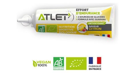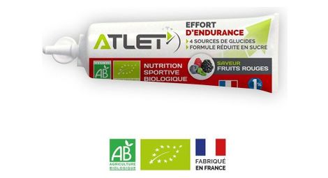 4 sources de glucides sirop de riz maltodextrine sirop d agave miel de fleurs reduction du sucre ratio sucre glucide ajout de poudre d acerola de gingembre et de sodium sans utilisation de dextrose sirop de glucose colorant et arome artificiel apport glucidique pour effort d endurance texture gel facile a absorber durant l effort refermable une fois ouvert retourner le bouchon et l inserer sur le tube gout frais et gourmandles gels energetiques atlet sont formules avec des matieres premieres 100 biologiques selectionnees avec soin et vous aident a gerer vos efforts de longue duree a l entrainement comme en competition