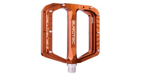La penthouse mk5 de burgtec ne s est pas contente de faire un lifting a la prestigieuse pedale mk4 la plateforme a ete entierement revue elargie et allegee les picots sont plus fins et plus longs pour toujours plus de grip les axes sont toujours montes sur des bagues en teflon pour assurer une meilleure etancheite et longevite des pedales details corps de pedale en aluminium 7075 usine axe en acier en24t monte sur 2 bagues teflon dimensions de la plateforme 100 mm x 102 mm epaisseur 15 mm concavite 2 mm materiau des picots acier inoxydable largeur d un picot 3 5 mm hauteur d un picot 4 5 mm poids 379 g coloris iron bro orange