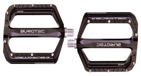 La mk5 burgtec ne s est pas contente de faire un lifting a la prestigieuse mk4 la plateforme a ete entierement revue elargie et allegee les picots sont plus fins et plus longs pour toujours plus de grip les axes sont toujours montes sur des bagues en teflon pour assurer une meilleure etancheite et longevite des pedales details corps de pedale en aluminium 7075 usine axe en acier monte sur 2 bagues teflon epaisseur 15mm concavite 2mm poids 379g