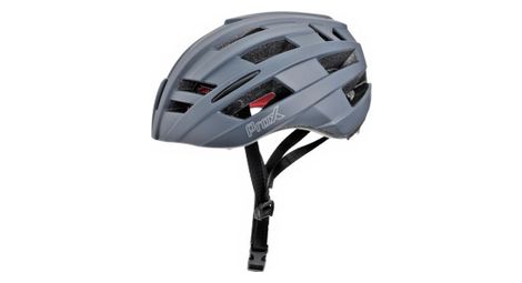 Ce casque de velo prox city est specialement concu pour les cyclistes qui se deplacent frequemment et beaucoup en ville ce casque de velo est dote d un feu arriere rouge integrela securite avant tout apres tout une chute avec votre velo est vite arrivee et peut facilement avoir des consequences desagreables un bon casque de velo est donc essentiel pour chaque trajet a velo en toute securite ce modele offre une ventilation et une securite efficaces grace a sa construction moulee cette technologie permet d utiliser de nombreuses ouvertures de ventilation 19 tout en maintenant la durabilite 19 aerations dans la coque du casque permettent a la tete de rester agreablement seche le reglage de la circonference se fait via le bouton qr facile a actionner d une seule main gros avantage du modele la presence d un feu arriere a diodes led qui complete agreablement les feux de velo standard augmentant considerablement la securite des cyclistes ce modele presente egalement un design plus urbain qui plaira a ceux qui recherchent des accessoires elegants caracteristiquestaille moyenne 52 58cmla maille de la partie avant protege des insectesil dispose d un eclairage arriere 6 led 3 modes d eclairagepoids environ 250 grammesreglable par bouton rotatifcouleur bleu gris mat