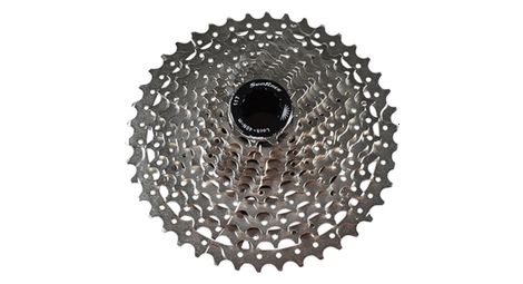 Composee en nickel de coloris argent la cassette sunrace pour velo 9 vitesses comprend des pignons de 11 a 28 dents elle s installe sur une roue arriere capable de recevoir une cassette 9v 11 25 11 12 13 15 17 19 21 23 25