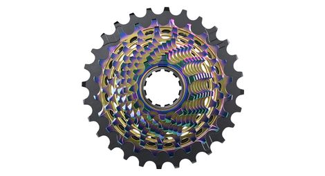 La cassette x dome eagle n a pas d equivalent elle a clos une fois pour toutes le debat sur l utilite d un derailleur avant sur les vtt desormais la plage de developpements allant de 10 a 50 dents a ouvert la voie a un nouvel environnement de transmission eagle concue pour etre utilisee avec notre corps de cassette xd eprouve et fiable cette cassette offre une plage de developpements parfaite de 500 il est prouve d apres des tests independants que grace a la structure x dome nous disposons la de la cassette la plus solide du marche les nouvelles caracteristiques de changement de vitesses ameliorent le passage ainsi que le maintien de la chaine cette cassette correspond parfaitement en termes de performances et de coloris a la gamme de composants compatibles xx1 eagle axs details le nouveau coloris varie est parfaitement assorti au xx1 eagle axs la technologie de fabrication des cassettes sram garantit la meilleure resistance et le poids le plus leger possibles les toutes nouvelles fonctionnalites de changement de vitesses donnent naissance a un systeme plus doux et plus silencieux avec un meilleur passage des vitesses vers l interieur comme vers l exterieur compatibilite avec le corps de cassette xd 10 a 50 dents 10 12 14 16 18 21 24 28 32 36 42 50 traitement rainbow reference 00 2418 098 000