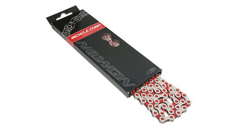 CHAINE VELO ROUTE-VTT 11V. NEWTON KMC ARGENT-ROUGE 116 MAILLONS COMPATIBLE SHIMANO-SRAM