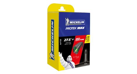 La chambre a air michelin protek max assure le maintien de la pression grace a la combinaison du liquide preventif et du butyl details taille de roue 27 5 valve schrader 48 mm dimensions etrto poids reference ean 27 5 x 1 85 2 40 47 61 584 365 g 465562 3528704655625