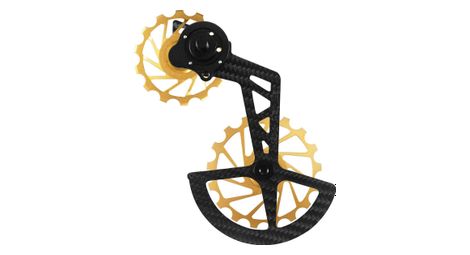 Concue par nos ingenieurs francais directement au sein de notre bureau d etudes notre chape carbone pour derailleur arriere se monte facilement ameliore la transmission de votre groupe de derailleur et apporte une touche de couleur a votre velo notre chape est fabriquee avec des materiaux tres haut de gamme fibre de carbone ultra legere alliage d aluminium 7075 et roulements etanches entierement en ceramique qui sont concus pour durer dans le temps nos galets en aluminium n ont pas d usure par rapport aux galets en plastique standard nos roulements etanches proteges par des covers en aluminium permettent une duree de vie plus longue nous avons concu ces chapes de maniere a ce que vous n ayez pas a vous soucier de la maintenance ou des problemes techniques cette version contient une cage carbone plus epaisse que nos versions shimano pour route afin d etre plus solide en cas de chocs eventuels