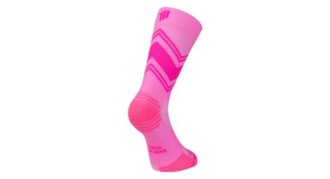 Chaussettes de course unisexes avec un meilleur soutien au niveau de la cheville et du metatarse elles beneficient d un niveau de compression moyen qui favorise la circulation sanguine et reduit l inflammation lors de courses longues le talon et la pointe sont en tissu eponge pour minimiser l impact et creer une plus grande sensation de confort de plus il previent et evite l apparition d ampoules details poids de la paire 45 g pour la taille 38 40 fabrique a 100 en espagne hauteur de tige 18 cm maille respirante fabrique principalement en coolmax et vaporfeel