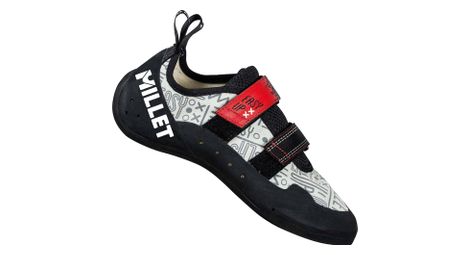 Declines sur un mode urbain graphique ces chaussons d escalade easy up sont tres accessibles pour debuter la grimpe outdoor comme indoor ils profitent de la qualite 4points grip la gomme historique de millet pour offrir le meilleur ratio adherence durabilite ideaux pour parfaire ses sensations dans la dimension verticale ils ont une base symetrique ergonomique et un talon genereux dans un profil assez souple qui optimise le confort d utilisation les pointes de pied profilees amenent la precision necessaire a la verticalite pour les debutants tout en restant toujours agreable au niveau des orteils sans compression pour la regularite de l apprentissage ils supportent tres bien le lavage avec une tige en polycoton garantie sans cuir d une tres bonne solidite accessibles adherents durables details semelle 4point grip durable progressive fit une forme symetrique procure une relative sensation de confort tout en restant precise lorsque la taille du chausson est adaptee poids 213g par chaussure