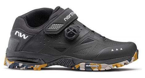 Chaussure de all mountain pour homme semelle x fire avec conception a clipsage rapide et caoutchouc michelin pour une adherence impressionnante sur la zone de la pedale et hors du velo details nouvelle conception mi haute pour une protection accrue de la cheville et un confort lors des descentes les plus adrenaliniques la construction en couches thermosoudees avec renforts internes thermosoudes offre une protection superieure avec une epaisseur et un poids minimises les boucles en tissu doux pour les lacets reduisent les points de pression impression en caoutchouc sur le talon nouvel embout avec renfort tpu thermosoude cadran slw3 plus nouveau bracelet supplementaire plus large le seul cadran avec deverrouillage pas a pas et complet en un seul bouton la surface superieure perforee assure une ventilation optimale