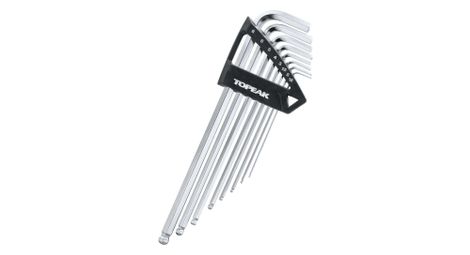 Topeak duohex wrench set dx est compose de neuf cles hexagonales en acier s2 haute resistance pour une extreme robustesse avec une pointe spherique de precision pour le vissage en angle details cles hex 1 5 2 2 5 3 4 5 6 8 10 mm materiaux acier sncm v poids 420 g dimensions 23 x 10 5 x 1 8 cm reference tps sp67