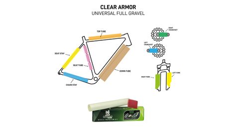 Kit universal full gravel protection cadre fourche manivellesprotegez votre gravel roulez l esprit libre concu pour les gravel modernes le kit universal full gravel monkey products offre une protection complete du cadre de la fourche et des manivelles grace a un film en polyurethane ultra resistant transparent et durable fabrique et conditionne en france ce kit universel s adapte a la majorite des cadres du marche et garantit une protection optimale contre les impacts rayures et frottements lies a une pratique engagee les produit protection complete cadre fourche et manivelles incluses pour une couverture totale concu pour les gravel dimensions adaptees aux tubes larges et aux zones d impact specifiques aux gravel film haut de gamme polyurethane auto cicatrisant epaisseur 200 microns transparent et resistant aux uv pose facile film repositionnable compatible avec pose humide durabilite maximale ne jaunit pas ne craquele pas ne se decolle pas finition professionnelle invisible une fois pose conserve le design et les couleurs du cadre fabrication francaise concu decoupe et conditionne dans nos ateliers du sud de la france contenu du kit 1 x protection tube diagonal 11cm x 59cm 1x protection tube superieur 7cm x 55cm 2x protections bases arrieres 5cm x 29cm 2x protections haubans 5cm x 29cm 2x protections de fourreaux de fourche 7cm x 23cm 2x protections de manivelles 6cm x 16cm 3x protections tubes de selle 2 5cm x 6 5cm 6x patches passage de gaines1x raclette pour une application parfaite
