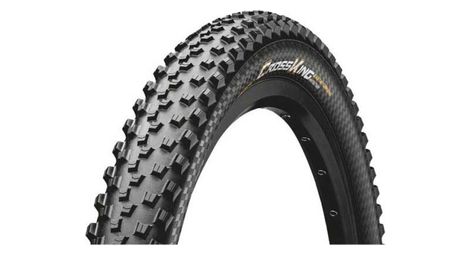 Le pneu vtt continental cross king est un pneu pour vtt cross country fabrique avec le compose puregrip qui assure une excellente adherence avec une faible resistance au roulement fabrique a la main c est un pneu rapide a adherence elevee avec un dessin de bande de roulement concu pour rester propre et exempt d incrustations a tout moment une bande de roulement centrale dense permet un deplacement facile tandis que des commandes exterieures surelevees assurent une traction sure dans les virages details tringles souples tubeless ready protection shieldwall system melange de gomme puregrip compound tpi 3 180 e25 permet d equiper des vae pouvant rouler jusqu a 25 km h dimensions etrto pressions poids reference 29 plus x 2 60 65 622 3 0 a 4 0 bar 1020g 0150502