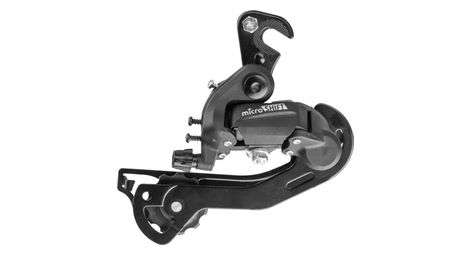 Le derailleur arriere microshift 6 7 vitesses chape longue avec patte est un derailleur arriere vtt gravel destine aux transmissions 6 ou 7 vitesses c est un derailleur entree de gamme fiable correspond a la gamme altus shimano proposant un excellent rapport qualite prix ideal pour restaurer un vtt loisir details vitesses 6 7 chape longue materiaux acier avec patte de fixation claw mount petit pignon max 14t min 13t grand pignon max 30t min 28t capacite 43 t compatibilite shimano couleur noir poids 271 g