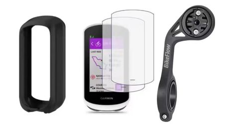 Offrez a votre compteur garmin edge explore 2 une protection complete et un confort d utilisation optimal avec ce pack 3 en 1 il comprend housse silicone noireultra legere et parfaitement ajustee elle protege votre garmin contre les chocs rayures et projections tout en conservant l acces total aux boutons et au port de charge verre trempe de protectionprotection d ecran ultra transparente et resistante concue pour absorber les chocs et prevenir les rayures profondes surface anti traces haute sensibilite tactile sans alteration de l affichage un support deporte concu specialement pour les compteurs gps garmin de grande taille comme les modeles edge 1030 1040 1050 edge explore 1 2 grace a son bras rallonge il offre une position avancee ideale parfaitement adaptee a la longueur des compteurs haut de gamme de garmin pourquoi ce support est optimise pour les grands compteurs les garmin edge 1030 1040 et 1050 explore 2 mesurent environ de 114 a 117 mm de long sur de nombreux supports standards cette longueur entraine un debordement vers l arriere ce qui fait que le compteur vient empieter sur la potence voire gener l acces aux cables ou au cintre grace a son design plus allonge de 141 mm avance le compteur vers l avant offrant une position degagee et ergonomique resultat le compteur reste entierement devant la potence pour un poste de pilotage plus clair plus propre plus securisant contenu du pack1x housse silicone noire pour garmin edge explore 21x verre trempe de protection1x support deporte xl bikeflow avec visserie incluse