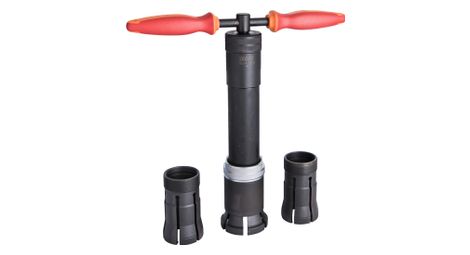 Cet outil permet d extraire rapidement les cones de fourches avant de 1 1 1 8 1 1 2 suspendue ou rigide sans l utilisation d un marteau convient a la fois pour un usage professionnel et domestique details matiere acier au carbone premium flex revetement bruni selon la norme din 5093 poids 4674 g dimensions l 351mm x b 320mm x d 1 1 1 8 1 1 2 comment utiliser l outil nbsp cet outil permet d extraire rapidement les cones de fourches avant de 1 1 1 8 1 1 2 suspendue ou rigide placer l extracteur sur le pivot de fourche serrer l outil sur le cone en tournant la bague centrale tourner les poignees superieures afin d extraire le cone l outil assure une operation delicate sans marteau