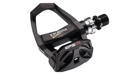 Systeme de clipsage exustar eps r identique look keo corps composite axe titane grade 5 couleur argent roulements cartouche complete etanche avec bagues cartouche remplacable reglage de tension du ressort cales e arc11 fournies dimensions 86 x 89 mm poids 202 gr paire compatible avec toutes chaussures standard 3 trous