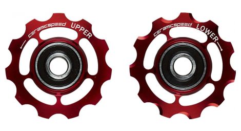 Ameliorez les performances de votre derailleur arriere shimano 11 vitesses avec des galets qui reduisent la friction et augmentent la duree de vie des roulements les notres sont concus pour fonctionner avec moins de friction augmentant ainsi la puissance transmise a la roue arriere les galets en aluminium usine avec roulements standard se composent de billes ceramicspeed d origine installees dans une cage en acier trempe details galets ceramicspeed 11 dents materiau aluminium compatibilite shimano 11 vitesses reference cs107483 livre avec deux galets a 11 dents 4 x entretoises ceramicspeed bearing oil en flacon compte gouttes de 15 ml feuille d autocollants