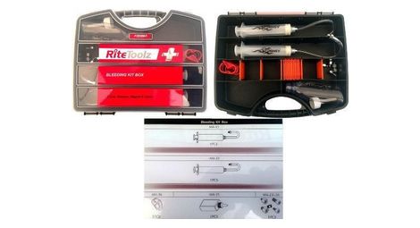 Le kit comprend 2 seringues de qualite professionnelle de 30 ml 2 raccords complets de chaque diametre m4 m5 et m6 chaque raccord comporte la piece filetee et son joint le flexible le clips de fermeture anti reflux et l adaptateur pour la seringue 1 support de seringue pour l attacher au cadre 1 raccord rapide pour les etriers sram bleeding edge 2 joints de rechange pour seringue inclus duree de vie tres superieure aux seringues classiques kit compatible avec le liquide de frein dot conditionne dans une mallette avec mousse