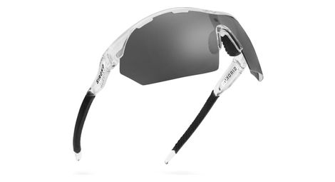 Lunettes de sport k3s photochromic grey plus legeres que jamais leur monture de 26 grammes en pc et leur verre photochromique special tac 1 2 interchangeable et polarise offrent a tout athlete la plus haute performance tous les modeles de la collection k3s photochromic comptent avec notre systeme de ventilation drysky qui vous garantit une vision impeccable dans toute sorte de situations ce produit inclut un boitier rigide en pu une pochette microfibre et coussinets antiderapants de rechange pour nez et branches accessoires k3s disponibles clip optique tr90 verre antibrouillard et verre transparent notre verre photochromique se montre specialement sensible aux changements de lumiere s adaptant a chaque situation de facon extremement efficiente il s avere parfait pour les jours variables ou nuageux ainsi que pour des environnements ou l alternance entre zones ensoleillees et sombres soit habituel le verre k3s photochromic controle la transmission de lumiere de facon automatique il passe de categorie 2 a categorie 3 en moins de soixante secondes ce qui optimise le contraste et ameliore la visibilite ces pourcentages peuvent varier legerement composition polycarbonate