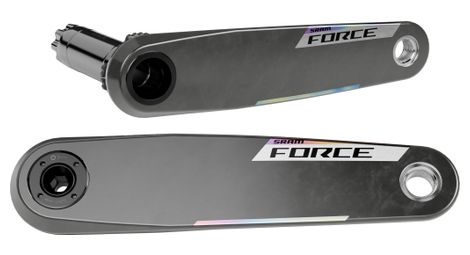 La mesure de puissance est un element crucial de l entrainement c est pourquoi nous avons fait en sorte que l integration du capteur de puissance a manivelle force axs soit la plus facile possible notre systeme de mesure de puissance ultra fiable est loge a l interieur de l axe du pedalier permettant d offrir une integration parfaite il est disponible dans un facteur q standard de 145 mm ou large de 150 mm pour s adapter a plus de velos il s agit d une technologie invisible et ultra legere qui vous aidera a atteindre la ligne d arrivee encore plus vite les produits l unite dub capteur de puissance integree a l axe mesure la puissance de la jambe gauche et calcule le total de watts fiabilite et precision quarq eprouvees autonomie longue duree de 400 heures pour faire parler la puissance tout au long de la saison pile aaa au lithium remplacable par l utilisateur lui meme le boitier de pedalier dub offre simplicite et durabilite etanche etancheite ipx7 a 1 metre de profondeur pendant 30 minutes leger a peine 40 g de plus que le pedalier standard details axe de pedalier dub 28 99 mm compatible 12 vitesses montage plateau direct mount sans plateau q factor 145 mm capteur de puissance dans l axe materiau carbone couleur unicorn grey w laser foil references 00 3018 362 000 left arm and power meter spindle assembly force d2 unicorn grey w laser foil dub 160 right arm bb spider chainrings non included 00 3018 362 001 left arm and power meter spindle assembly force d2 unicorn grey w laser foil dub 165 right arm bb spider chainrings non included 00 3018 362 002 left arm and power meter spindle assembly force d2 unicorn grey w laser foil dub 170 right arm bb spider chainrings non included 00 3018 362 003 left arm and power meter spindle assembly force d2 unicorn grey w laser foil dub 172 5 right arm bb spider chainrings non included 00 3018 362 004 left arm and power meter spindle assembly force d2 unicorn grey w laser foil dub 175 right arm bb spider chainrings non included