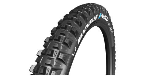 Le michelin e wild rear competition line est un pneu specifique pour une monte arriere avec un grip renforce ne vous laissez plus freiner dans vos rides il passe partout il est concu avec la nouvelle gomme e gum x composee d une gomme laterale et d une gomme centrale developpees pour optimiser le grip et d une sculpture issue des gammes enduro pour plus d accroche la carcasse gravity shield issue des competitions enduro garantit plus de protection une sous couche et une gomme centrale qui vont vous amener plus de rendement et une meilleure resistance au roulement pour consommer moins d energie pour parcourir plus de kilometres pour une monte optimale il est conseille d utiliser un pneu avant et un pneu arriere de la meme gamme e wild details tringles souples tubeless ready skinwall gravity shield melange de gomme e gum x tpi 3x60 competition line gamme de pneus pensee pour une utilisation intensive en competition certifie e bike ready pour les velos electriques pouvant evoluer jusqu a 25 km h dimensions etrto pressions poids reference 29 plus x 2 60 66 622 1 50 4 00 bar 1310 g 920622