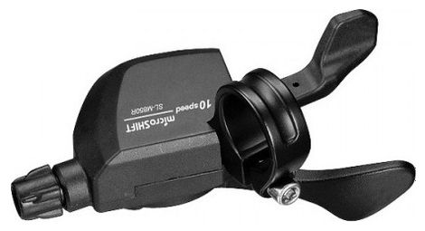 Le shifter microshift 10 vitesses xle est destine aux cintres droits riser et aux transmissions 10 vitesses uniquement confortable et ergonomique il permet un changement de vitesse intuitif et reactif pour les vtt a cintre droit c est un shifter milieu de gamme fiable et robuste details vitesses 10 position guidon droite comptabilite shimano slx deore sans indicateur de vitesse couleur noir poids 112 g