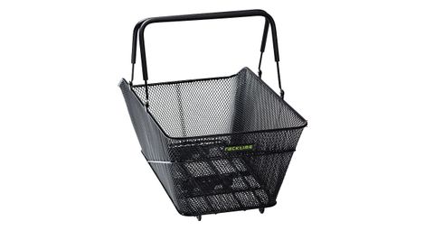 Panier uniquement compatible avec un porte bagage racktime un panier arriere en mailles metalliques extremement volumineux avec une anse details equipe d une fixation soudee sur le fond le panier se glisse simplement sur le porte bagages et se verrouille automatiquement volume 24 l poids 1700 gr dimensions 24 5 x 42 x 33 cm charge maximum 10 kg