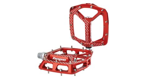 L aboutissement de toute notre experience dans la fabrication de la pedale f20 nous a permis de concevoir notre nouvelle pedale plate la f22 details corps de pedale asymetrique usine cnc en aluminium 2014 t6 profil de la plate forme a double concavite pour un meilleur maintien de la chaussure 22 picots remplacables de forme hexagonale pour une meilleure accroche conception de serrage inverse hauteur reglable grace aux rondelles fournies hauteur maximale de 6 mm mecanisme interne identique a celui de la tres fiable f20 3 roulements annulaires et 1 palier igus 3 joints d etancheite entierement reparable et reconstructible conception revisee de l axe pour une solidite et une resistance aux chocs ameliorees nouveaux axes en cr mo avec traitement thermique haute resistance couleur rouge poids 360g la paire