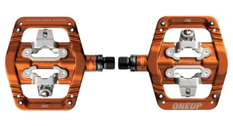 Avec seulement 26 8 mm les pedales oneup clip sont les pedales a clip pour vtt les plus fines au monde la plateforme fine et large a des picots qui touchent reellement votre chaussure et un ajustement precis de la cale qui ne sacrifie pas la flottabilite ou la facilite de deverrouillage vous avez l impression d etre plus connecte avec plus de soutien et moins de coups de pedale details epaisseur 14 4 mm corps 26 8 mm cage taille 80 x 90 mm largeur de cage 57 5 mm flottement 5 angle de declenchement de 12 cales compatible spd comprend des entretoises de cale de 1 mm pour le reglage de la chaussure configuration des roulements bushing igus a l interieur et 3x roulements a cartouche scelles a l exterieur axe acier chromoly avec revetement ed noir pins axes filetes creux trous hexagonaux autonettoyants couleurs noir rouge vert bleu orange violet or bronze certification xc dh trail poids 410g avec les pins 4 pins par cote